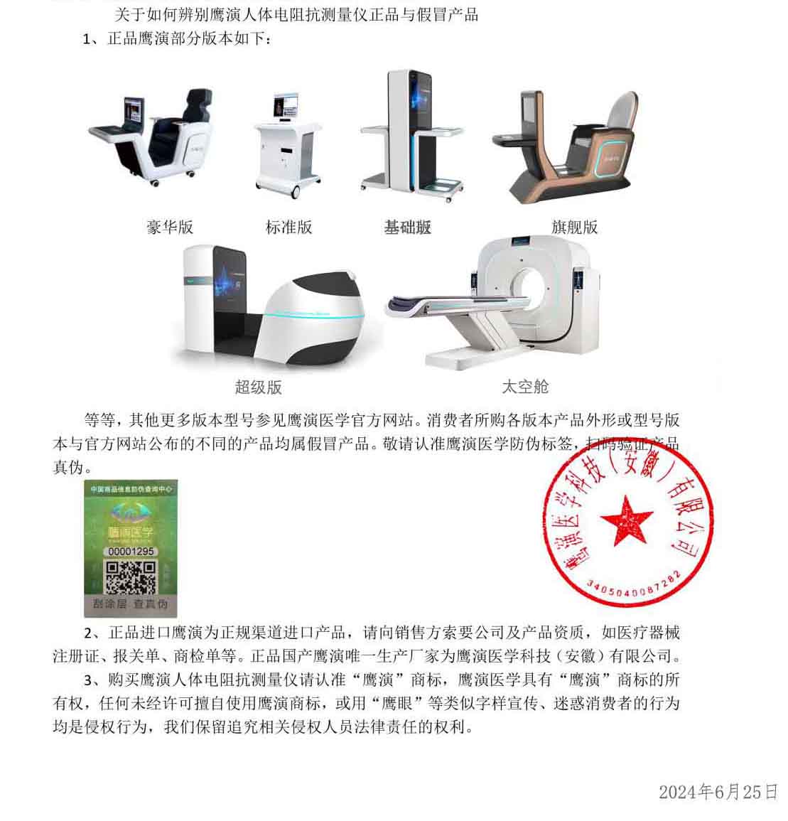 認準品牌:購買健康檢測設備時,請務必認準“鷹演醫學”品牌商標,切勿購買假冒產品。